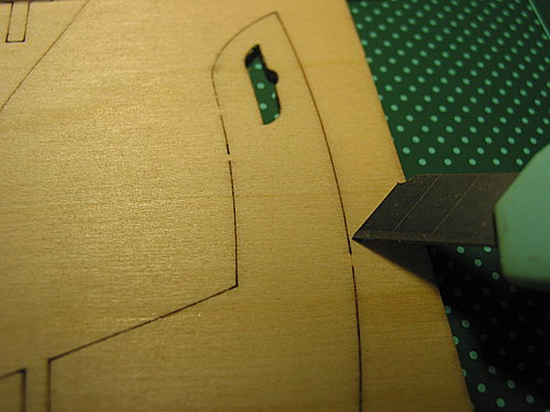 已經以雷射切割好的紅舉木艙門與艙窗